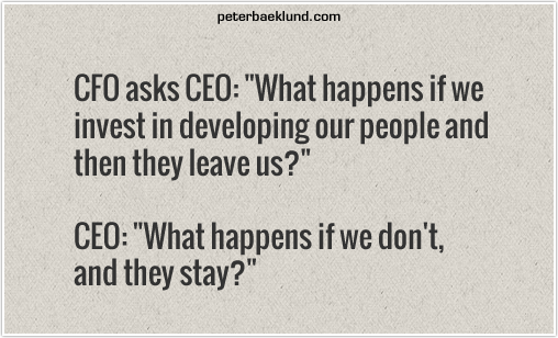 If you ask any business owner, would you like your business assets to increase in value, or decrease? I am sure they will look at you as if you must be really silly to even ask such question. However, if you ask them again, do they have any process in place to make sure their software programmer attending training, or even allow to attend any skill enhancement program; they probably will say no. Is this not weird? I have seen most company have the process that their software programmer needs an "approval" to attend training, let alone having hours set aside every week to perform self-study. Why would you create a process to prevent your assets increase in value? Do you think like the CFO in the quote above?